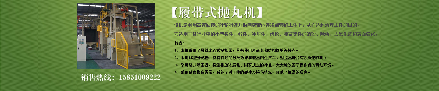公司主要產(chǎn)品有各種型號(hào)拋丸機(jī)、履帶式拋丸機(jī)、吊鉤式拋丸機(jī)、懸鏈?zhǔn)綊佂铏C(jī)、通過(guò)式拋丸機(jī);各種型號(hào)鑄鋼丸、鋼砂、合金鋼丸、強(qiáng)化鋼丸、不銹鋼丸;噴砂設(shè)備;環(huán)保除塵設(shè)備;鑄造設(shè)備;高效拋丸器;各種型號(hào)拋丸機(jī)配件等,并可根據(jù)用戶(hù)產(chǎn)品及產(chǎn)量需求設(shè)計(jì)符合要求的拋丸機(jī);本公司產(chǎn)品從設(shè)計(jì)、開(kāi)發(fā)、生產(chǎn)到服務(wù),全過(guò)程實(shí)行監(jiān)控,其產(chǎn)品在全方位立體的營(yíng)銷(xiāo)服務(wù)網(wǎng)絡(luò)中,遍布全國(guó)各省市區(qū)。